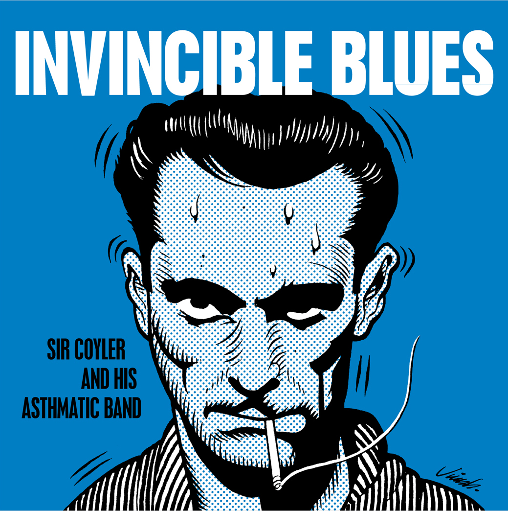 Cover art for a 7-inch 45 by Seattle garage rockers Sir Coyler & His Asthmatic Band— The songs are “Invincible Blues” and “Pink & Blue”— Buy it direct from Pig Baby Records—