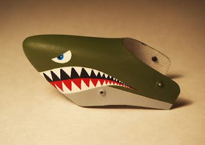 My old pal Rob requested a custom painted canopy for his model helicopter, and I went with a traditional nose cone shark design— Matte acrylic paint, approx. 3.5 inches long—